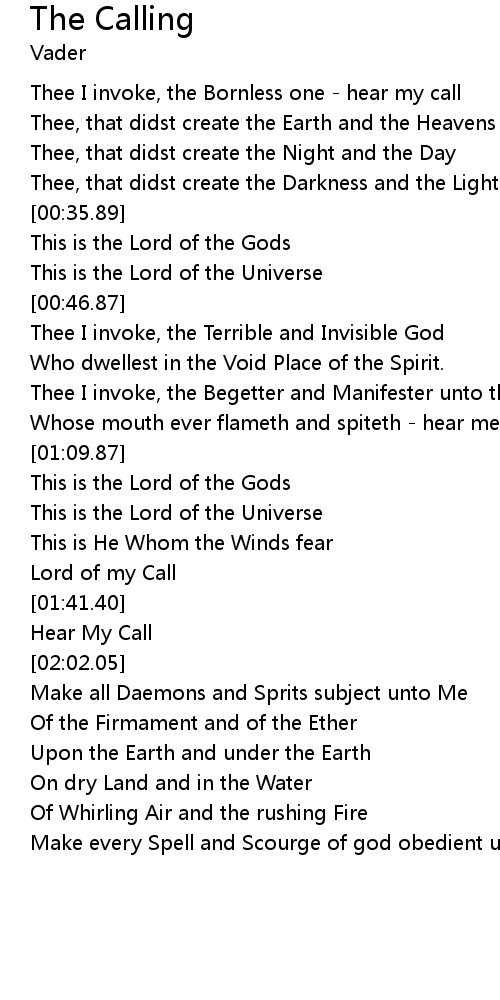 | [00:14.56] | Thee I invoke, the Bornless one - hear my call |
