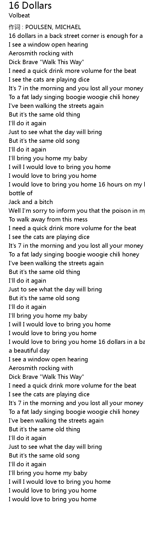| 歌曲 | 16 Dollars |
