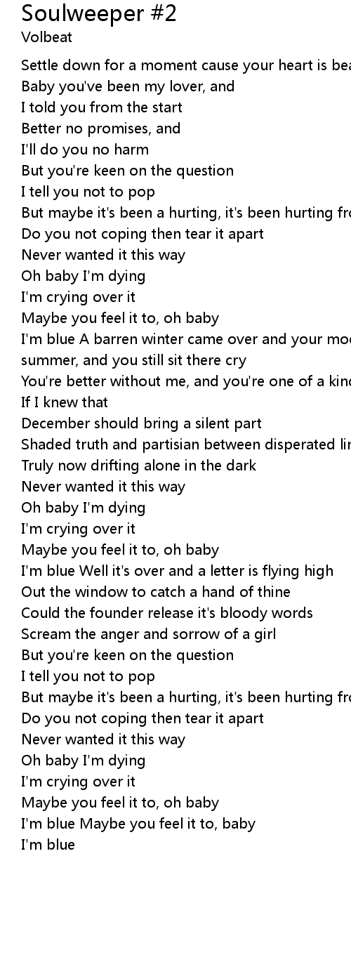 I'm blue A barren winter came over and your mood was like a fire 7 years and a summer, and you still sit there cry |