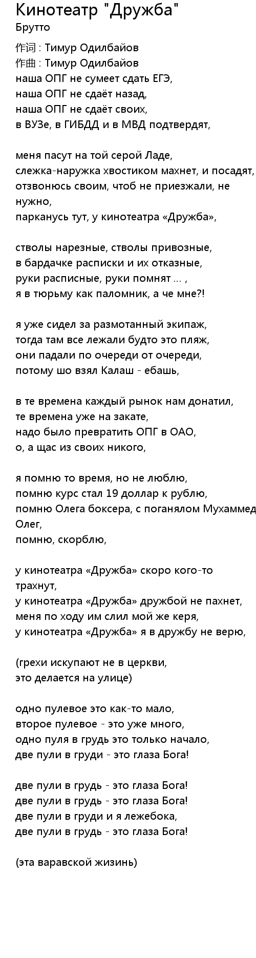 у кинотеатра «Дружба» я в дружбу не верю, |