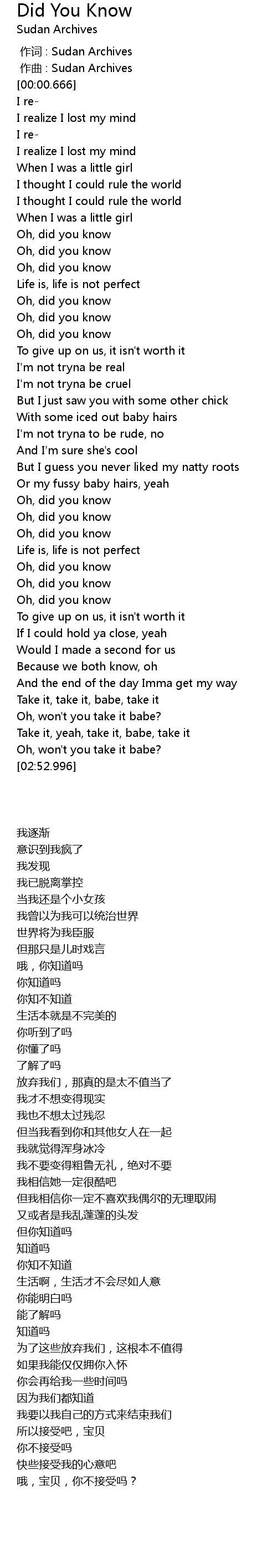 | [00:00.333] | zuo qu : Sudan Archives |