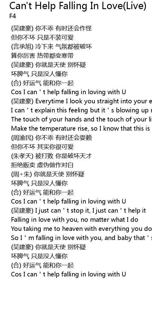 | [03:21.900] | Cos I can't help falling in loving with U |
