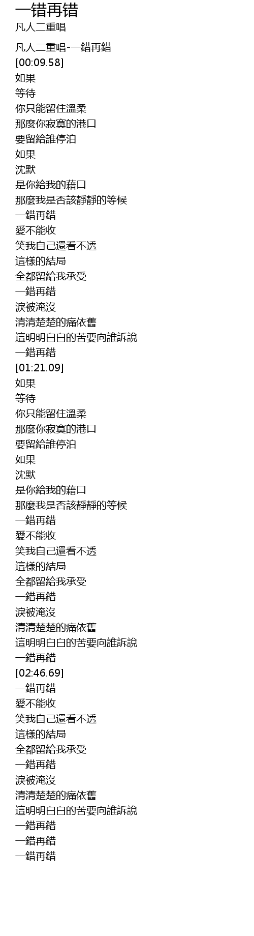 | [00:00.00] | 凡人二重唱-一錯再錯 |