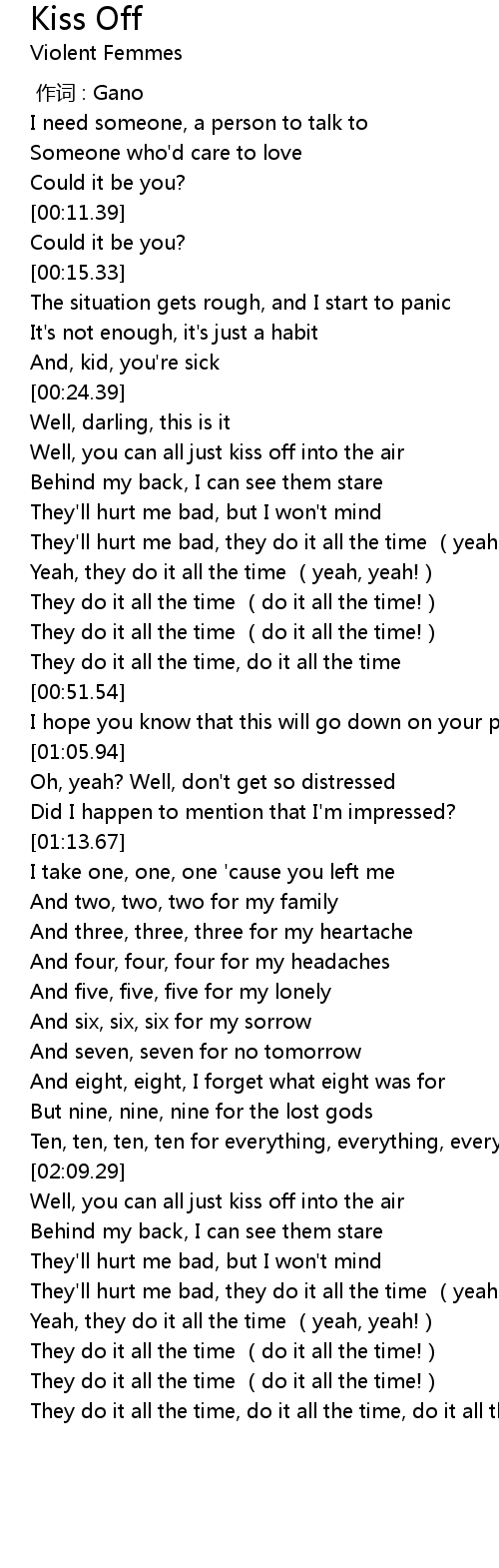 | [00:36.73] | They'll hurt me bad, they do it all the time (yeah, yeah!) |