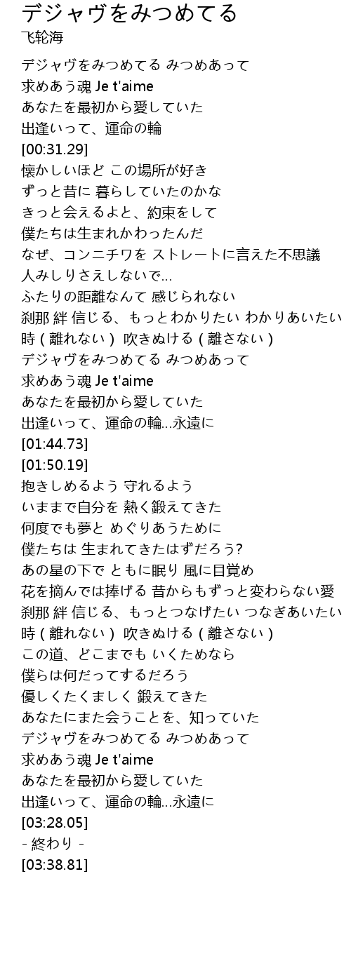 | [03:01.89] | デジャヴをみつめてる みつめあって |