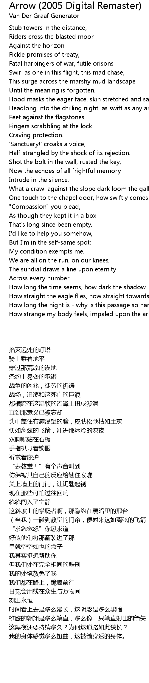 How strange my body feels, impaled upon the arrow. |