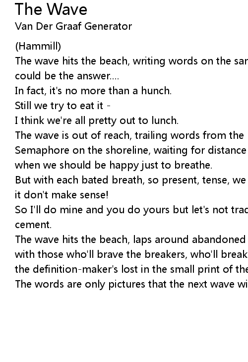 The wave hits the beach, laps around abandoned clothes, wants to share a joke with those who'll brave the breakers, who'll break bread rather than pray while the definition-maker's lost in the small print of the day. |