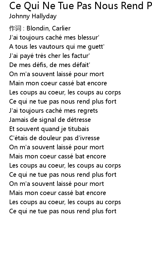 | 歌曲 | Ce Qui Ne Tue Pas Nous Rend Plus Fort |