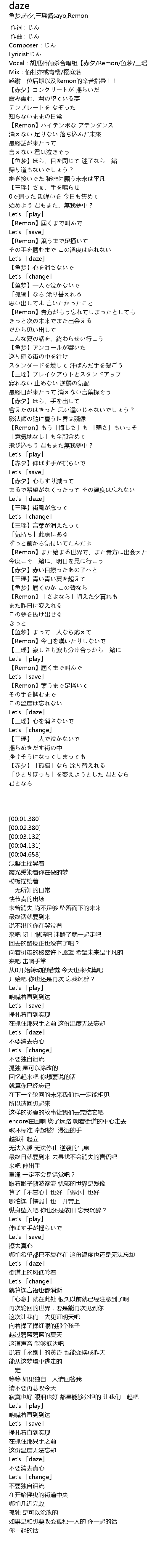 | [01:38.369] | 最終日が來たって 消えない言葉探そう |