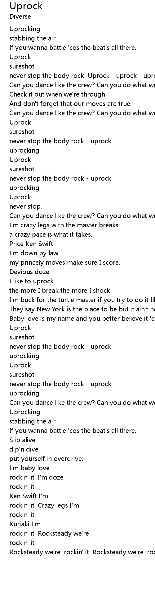 | never stop the body rock. Uprock - uprock - uprock. | |