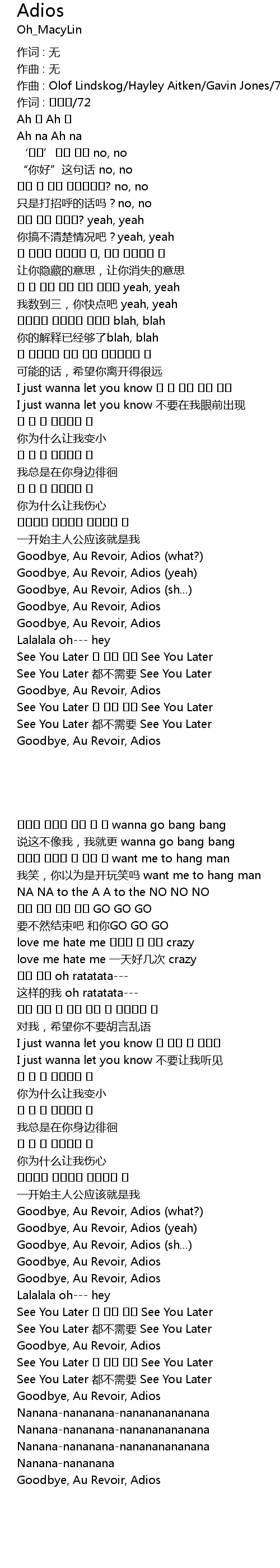 | 歌曲 | Adios |