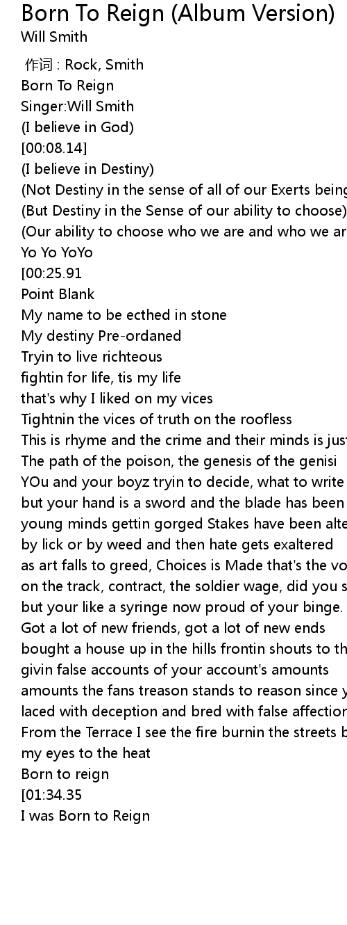 | [01:50.31] | I was Born to Reign |