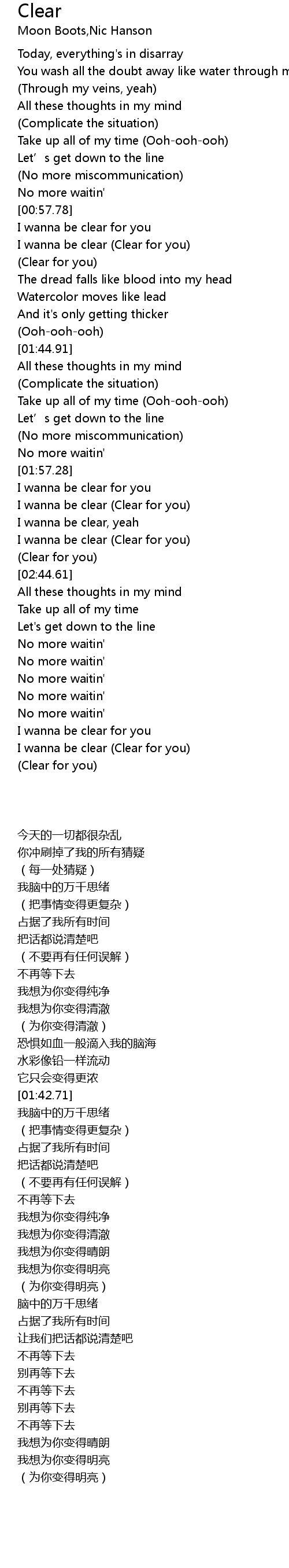 | [02:21.58] | I wanna be clear Clear for you |