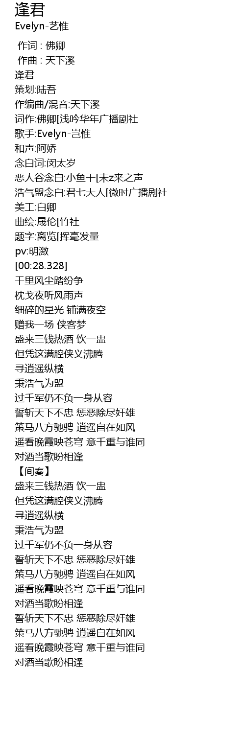 | [00:04.557] | 作编曲/混音:天下溪 |