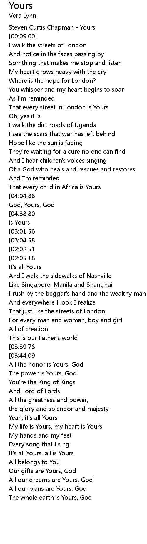 [04:21.80][04:04.88][03:09.70][02:52.56][01:53.60][01:36.27] And its all Yours, God, Yours, God