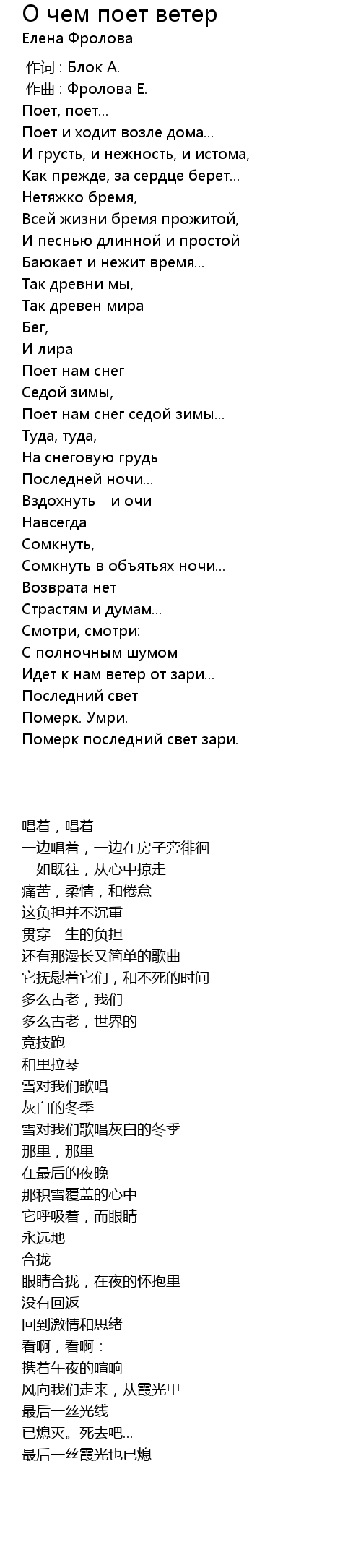 | 歌曲 | О чем поет ветер |