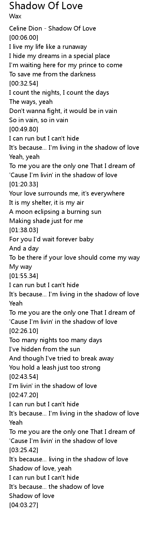 | [03:36.45] | Shadow of love, yeah |