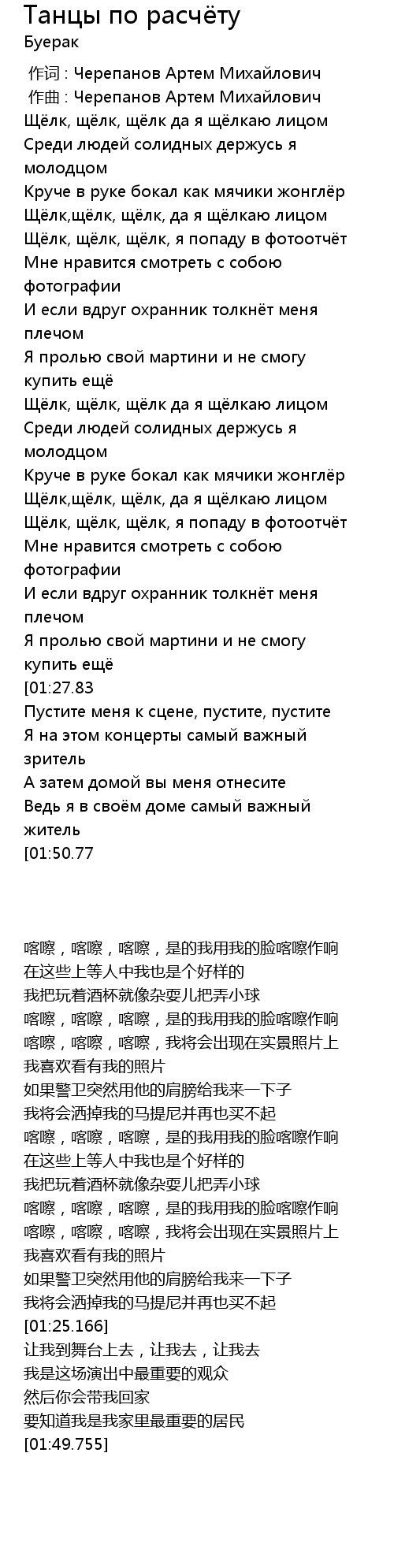 | [01:41.232] | Я на этом концерты самый важный зритель |