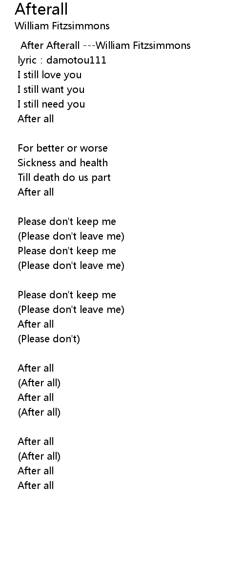 | After Afterall ---William Fitzsimmons | |