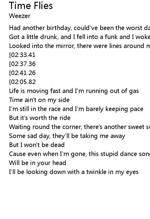 | [02:48.83][02:33.41][01:30.65][00:43.06] | Time flies when you're having fun |