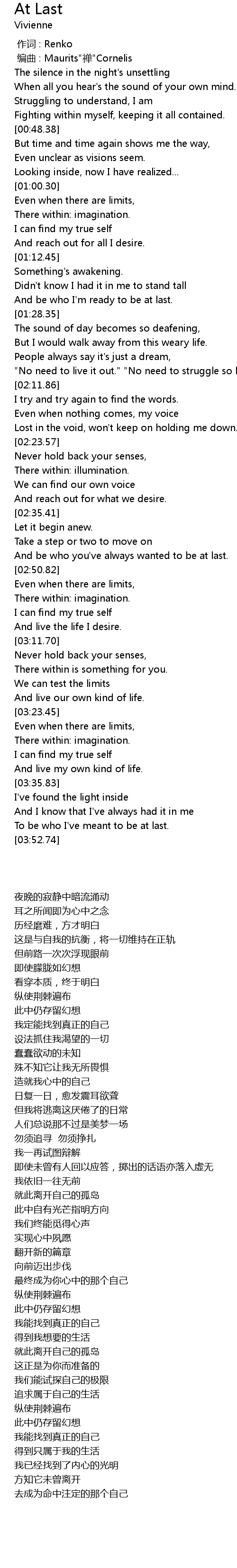 | [03:45.19] | To be who I' ve meant to be at last. |
