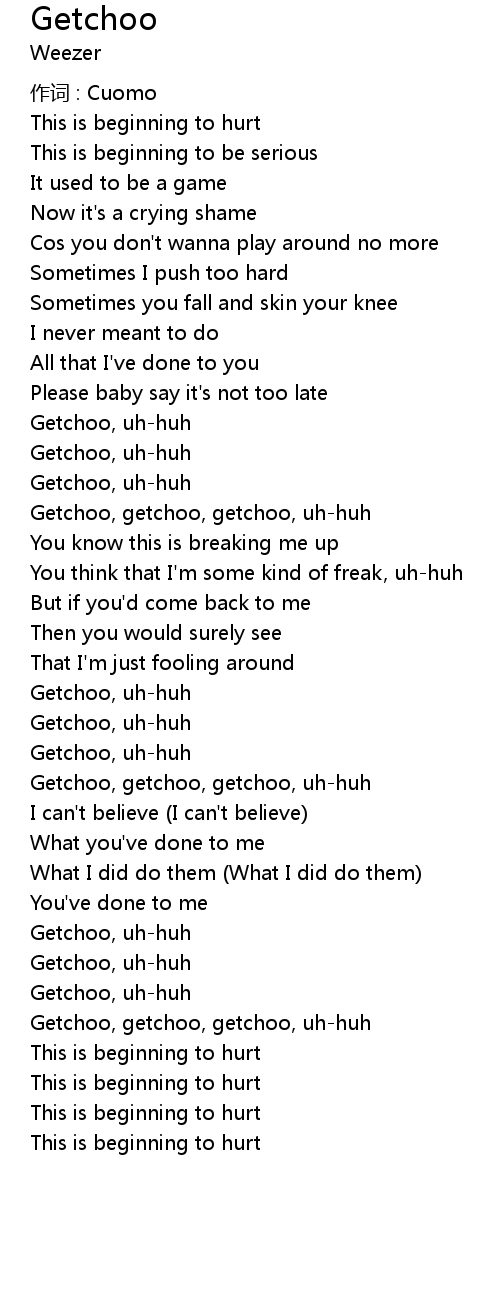 | Getchoo, getchoo, getchoo, uhhuh | |