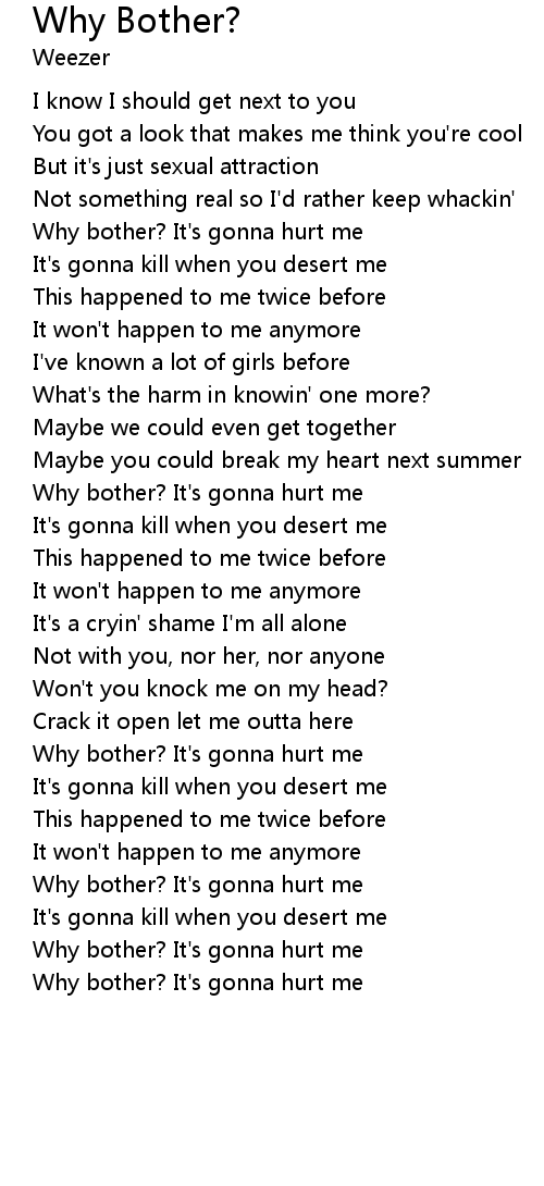 Why bother? It's gonna hurt me |