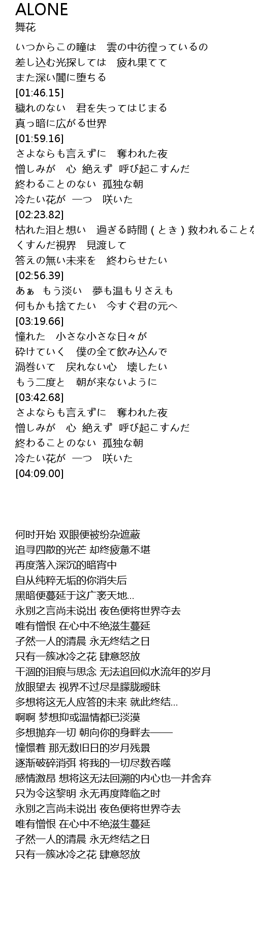 | [04:03.02] | 只有一簇冰冷之花 肆意怒放 |