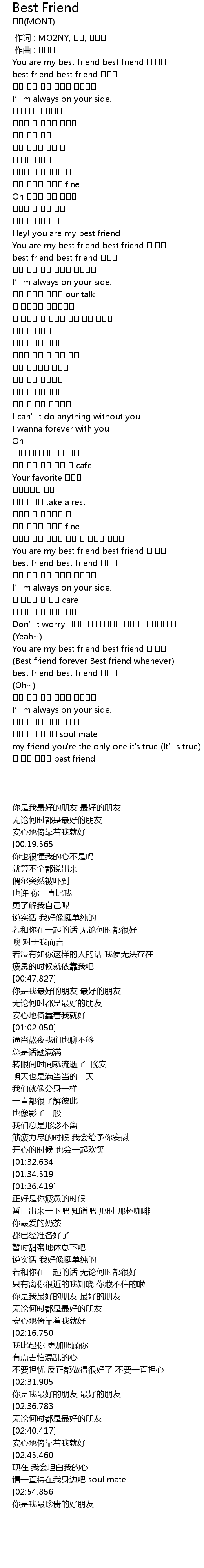| [02:04.334] | You are my best friend best friend 넌 나의 |