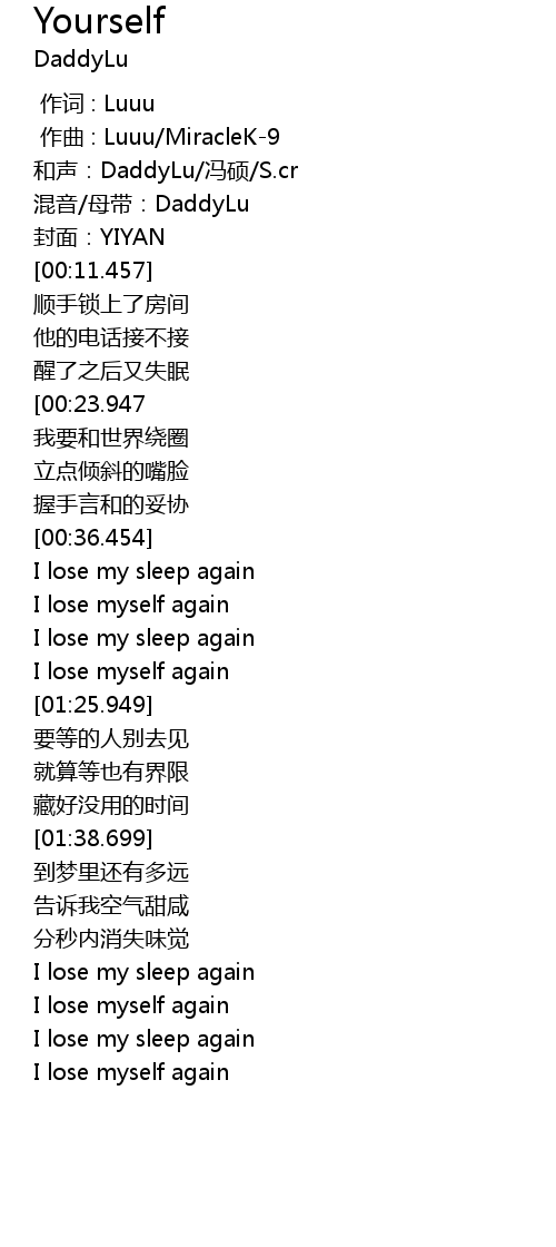 | [00:10.459] | 混音/母带:DaddyLu |