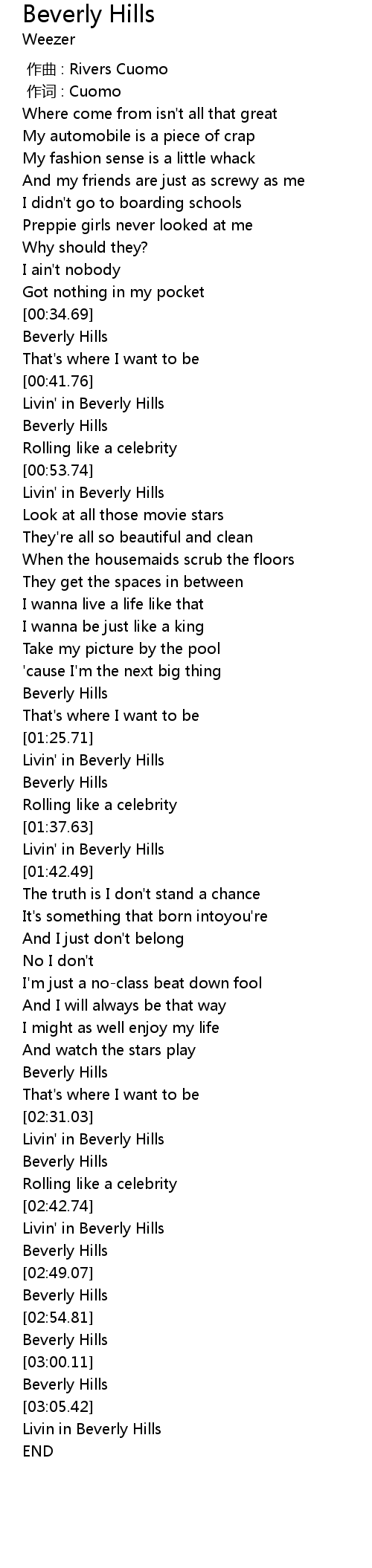 | [02:44.23] | Livin' in Beverly Hills |