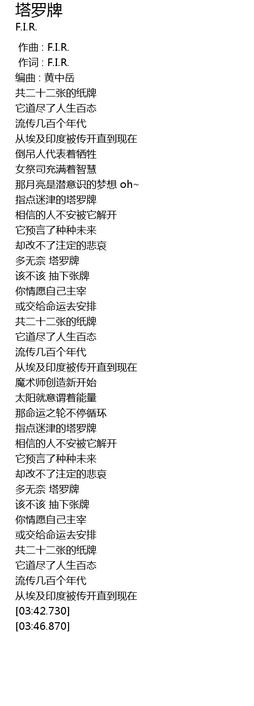 | [02:43.690] | 多无奈 塔罗牌 |