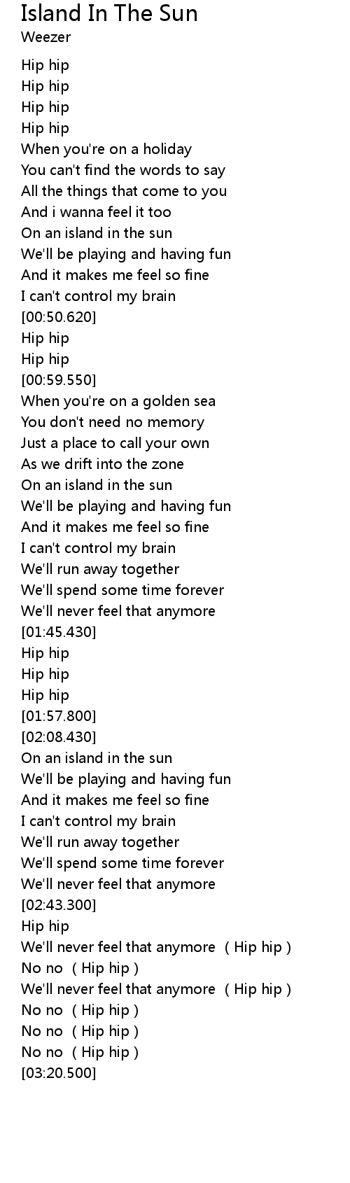 | [03:03.650] | We' ll never feel that anymore Hip hip |