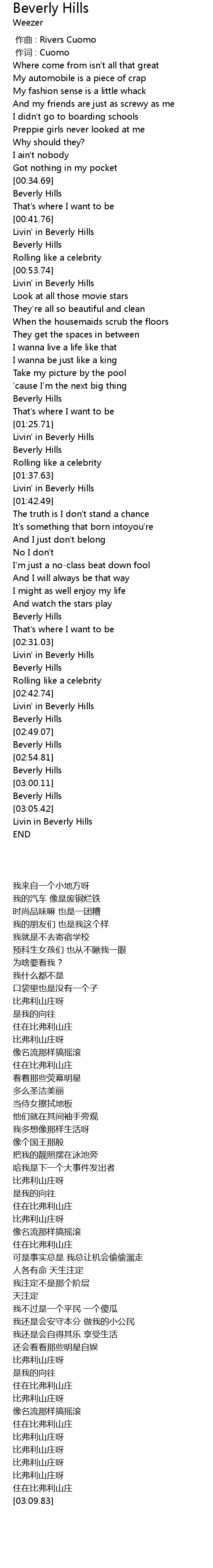 | [02:33.40] | 住在比弗利山庄 |