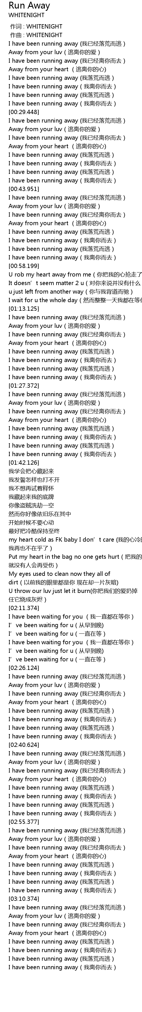 | [03:00.126] | I have been running away (我已经离你而去) |
