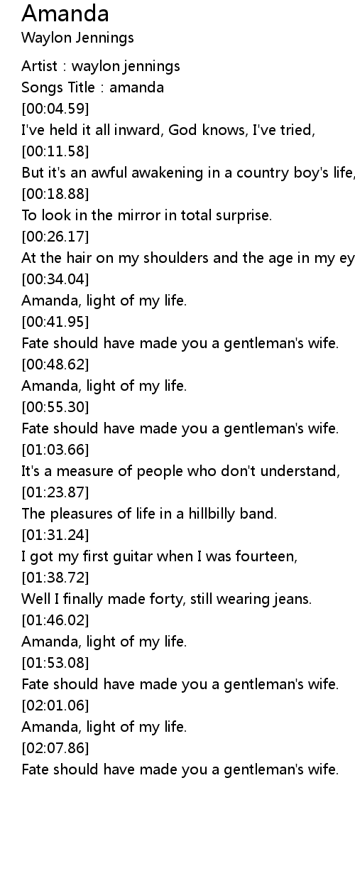 | [02:01.94] | Amanda, light of my life. |