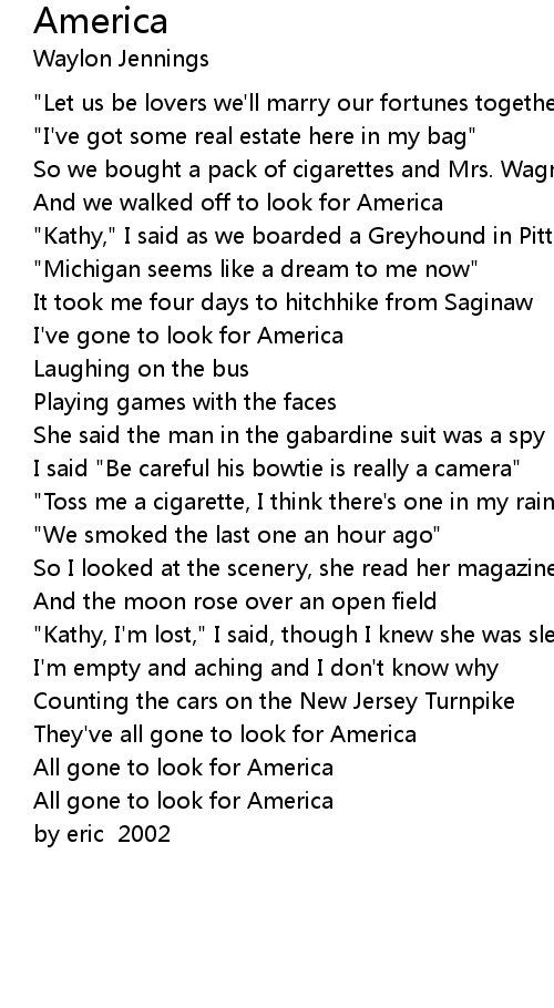 I've gone to look for America |