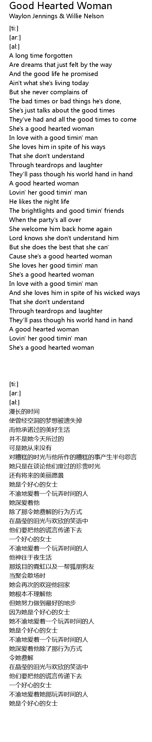 [00:50.12] She's a good hearted woman