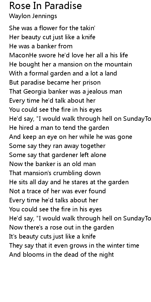 He'd say, "I would walk through hell on SundayTo keep my rose in paradise"