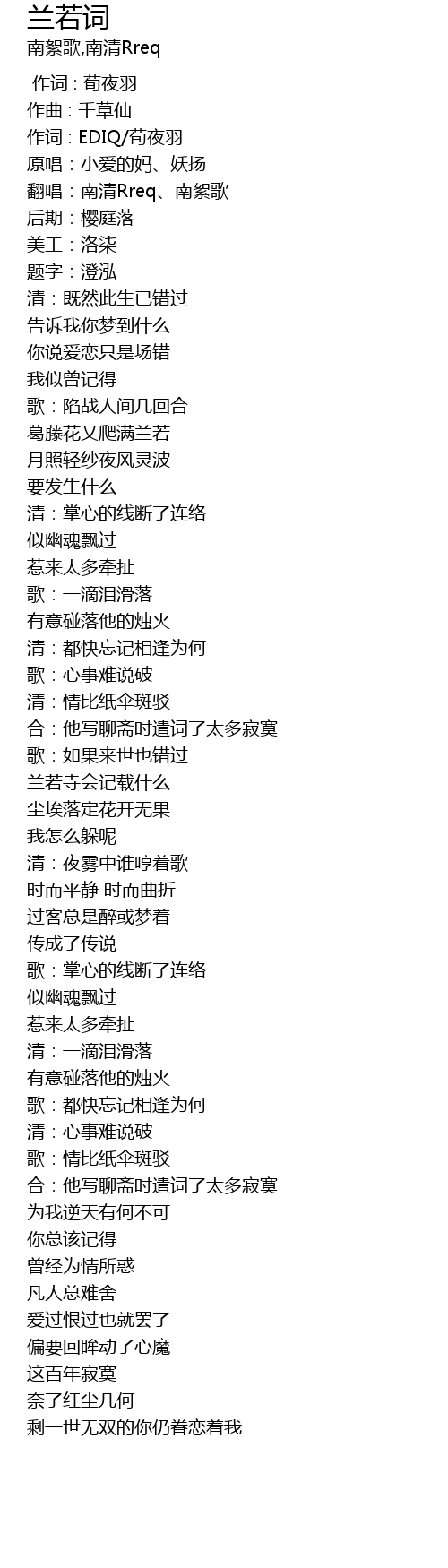 | [00:08.929] | 翻唱:南清Rreq、南絮歌 |
