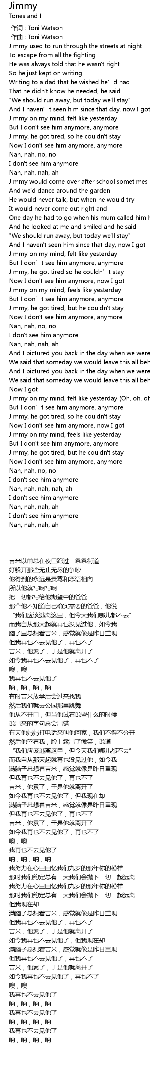 | [00:35.21] | Jimmy on my mind, felt like yesterday |