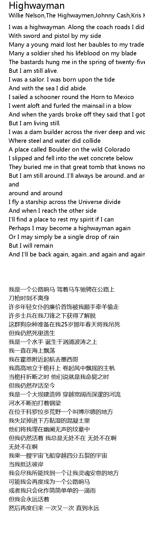 [00:10.56] I was a highwayman. Along the coach roads I did ride