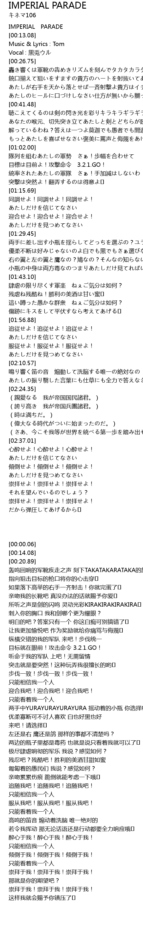 | [00:00.06] | IMPERIAL PARADE |