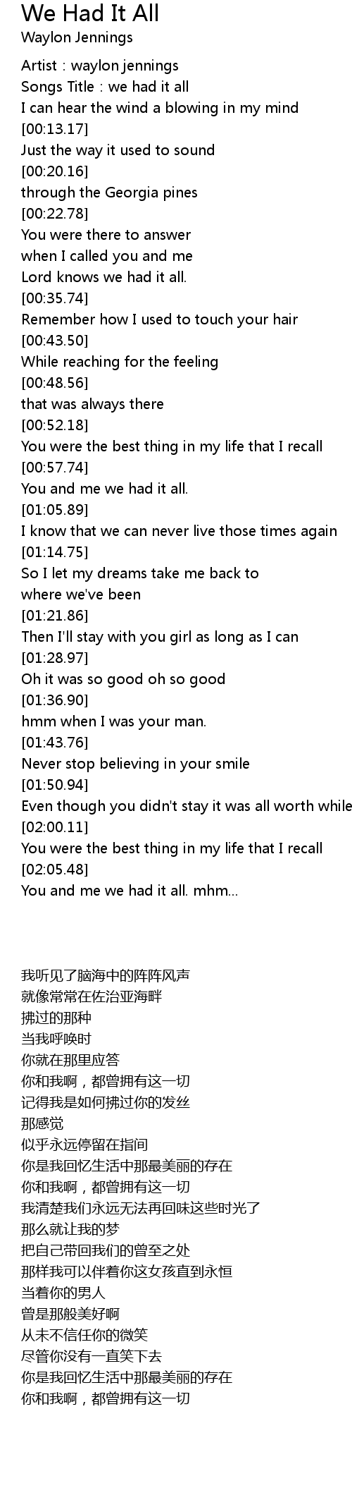 | [00:04.18] | Songs Title: we had it all |