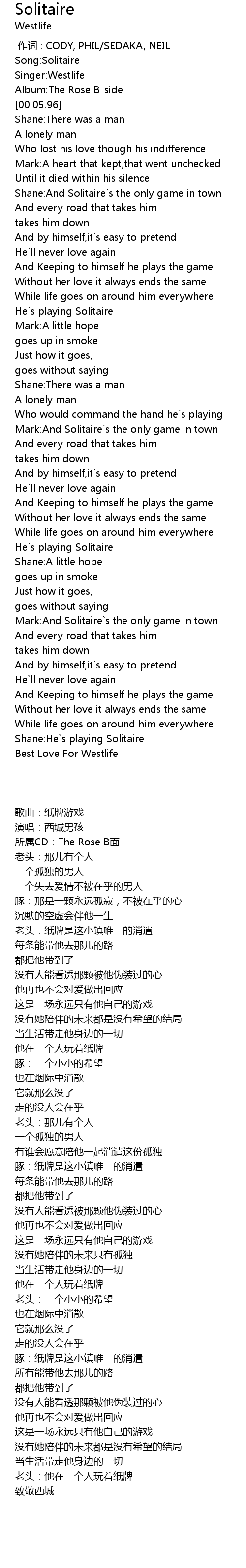 | [00:01.37] | Song:Solitaire |