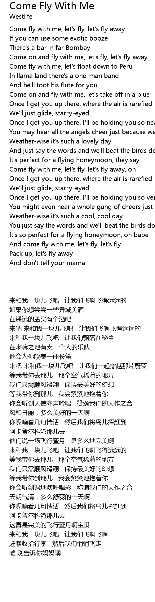 And come fly with me, let's fly, let's fly |
