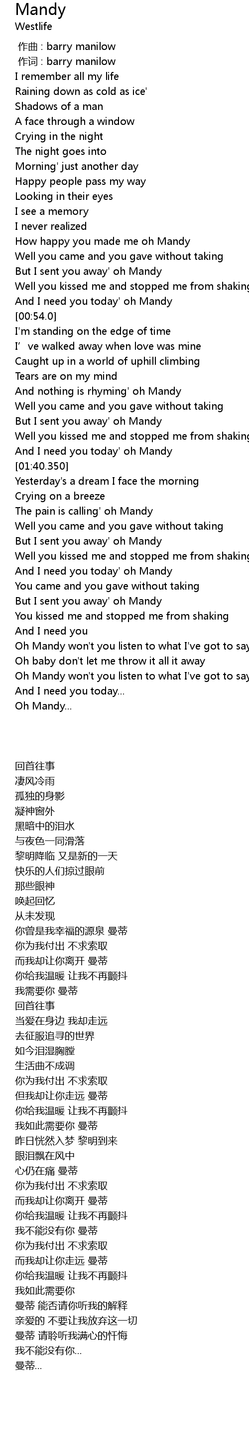 | [02:50.250] | Oh Mandy won' t you listen to what I' ve got to say |