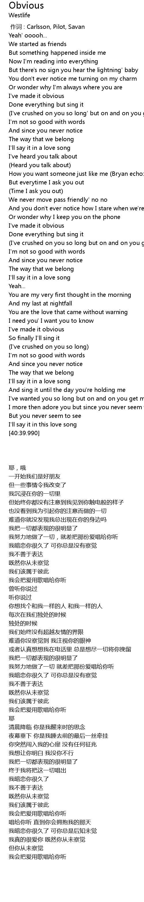 | [00:00.00] | 作词 : Carlsson, Pilot, Savan |