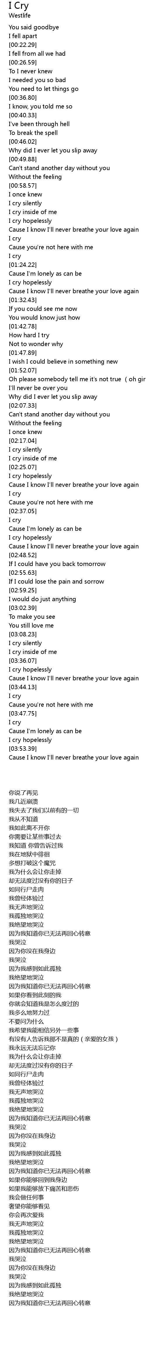 | [03:48.54] | I cry |