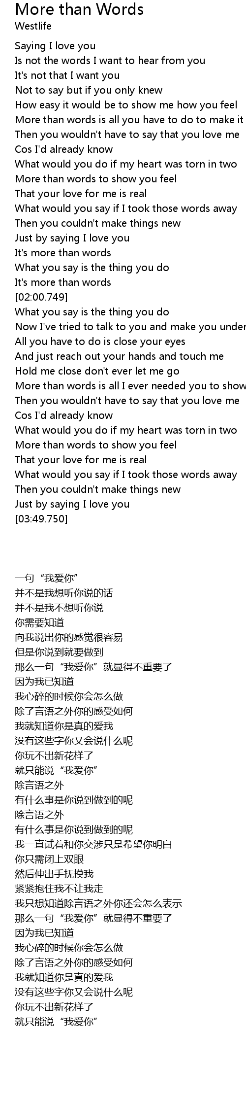 | [01:59.99] | It's more than words |